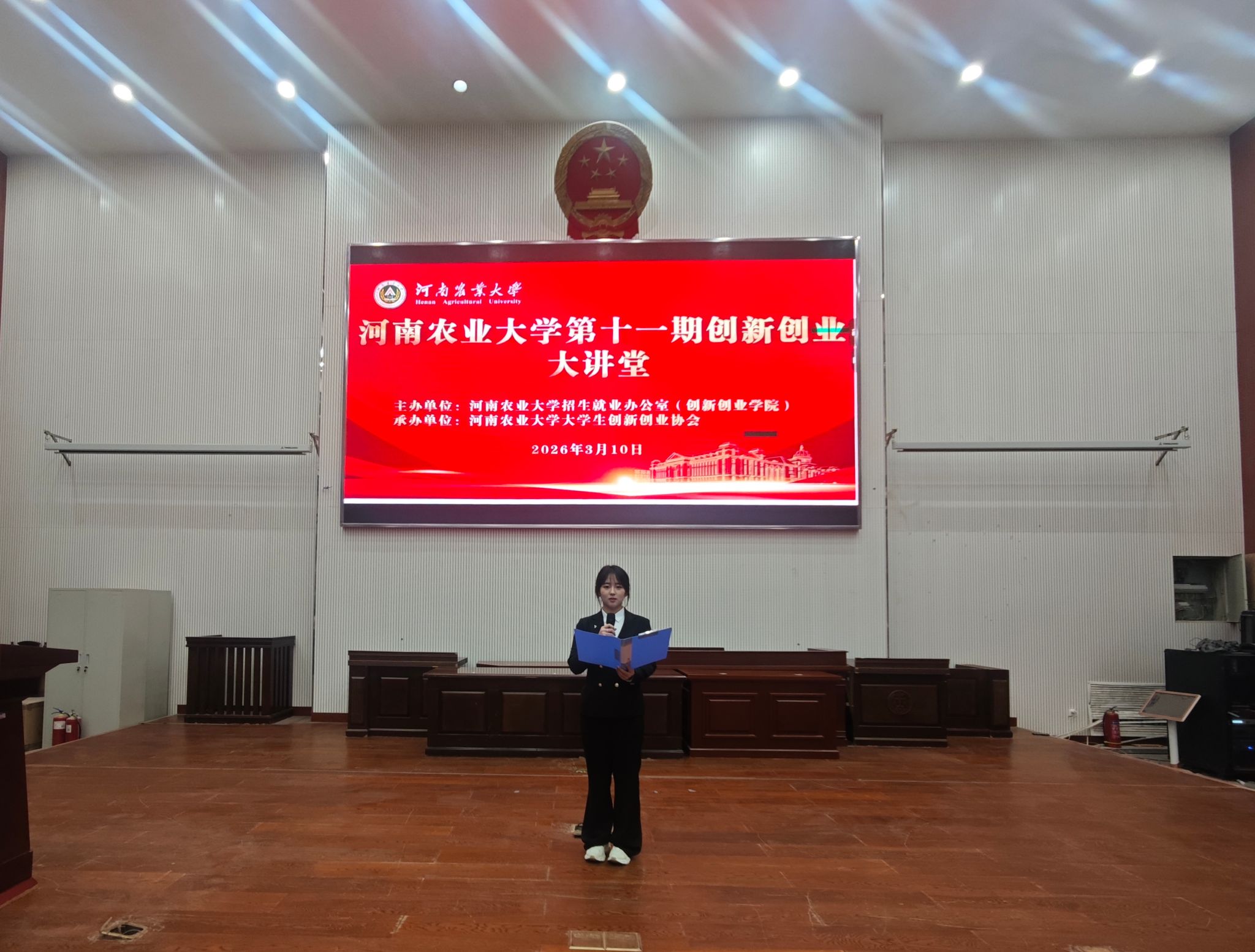 3月10日下午,河南农业大学第十一期创新创业大讲堂在龙子湖校区繁塔楼模拟法庭举办。本次活动由招生就业办公室(创新创业学院)主办,大学生创新创业协会承办,特邀我校创新创业导师、副教授、中客创盟国际控股集团董事长、中国创造学会产学研合作促进分会副主任、亚太国际创新人才联合会秘书长、河南省教育人才学会就业创业委员会主任王潭,阿里巴巴国际站企业嘉宾高康康担任主讲嘉宾。